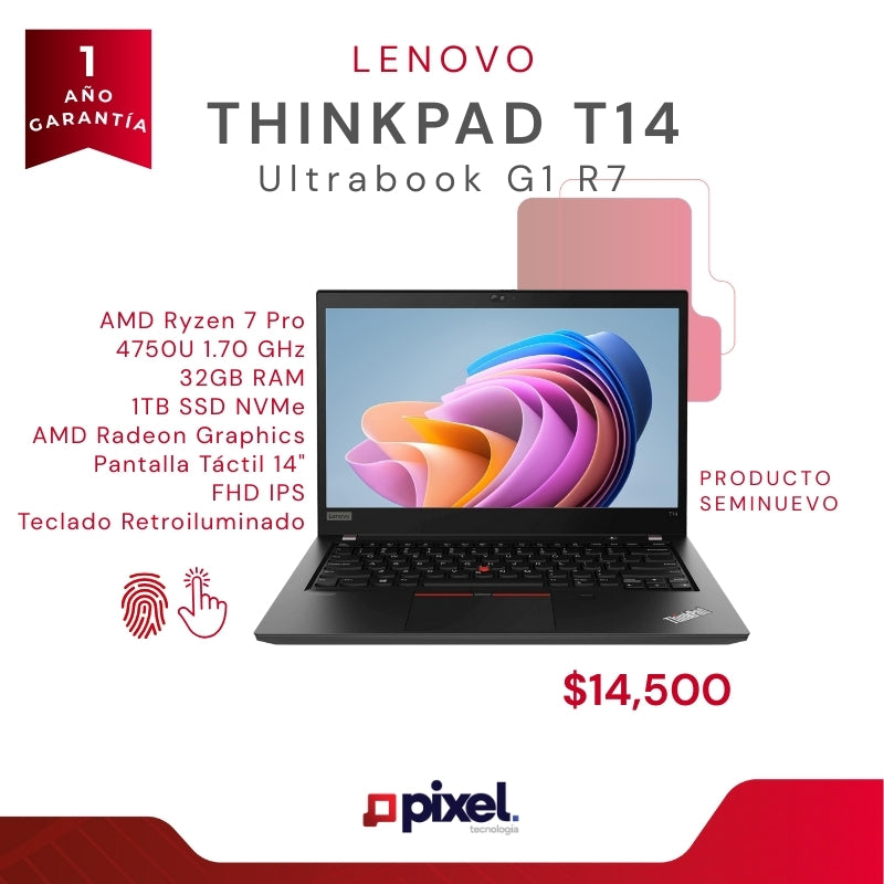 ThinkPad T14 G1 con Ryzen 7 Pro es una ultrabook empresarial diseñada para profesionales que necesitan alto rendimiento, seguridad y portabilidad. Gracias a su procesador AMD Ryzen 7 Pro, gran capacidad de memoria y almacenamiento veloz, este equipo es ideal para trabajo corporativo, análisis de datos, programación y multitarea avanzada, manteniendo la confiabilidad característica de la línea ThinkPad.